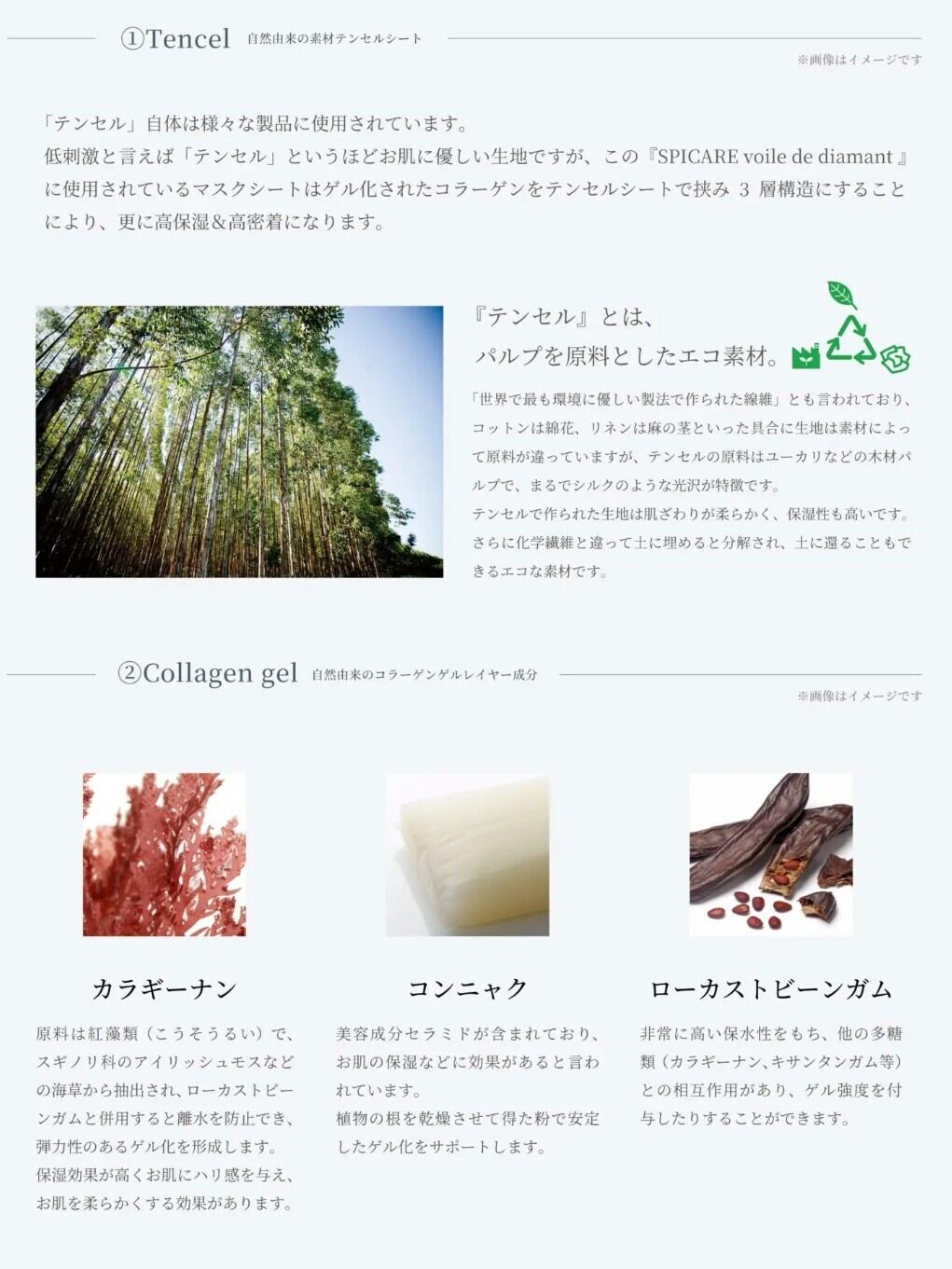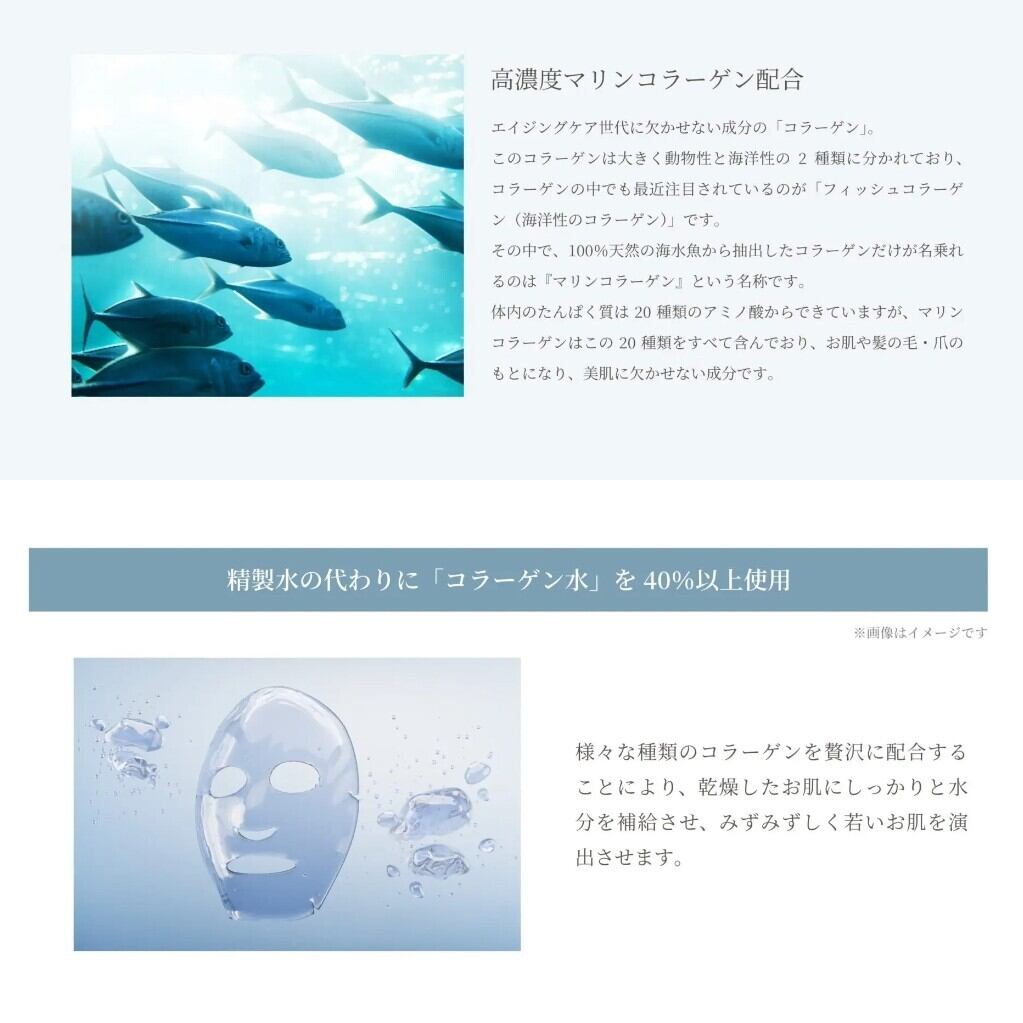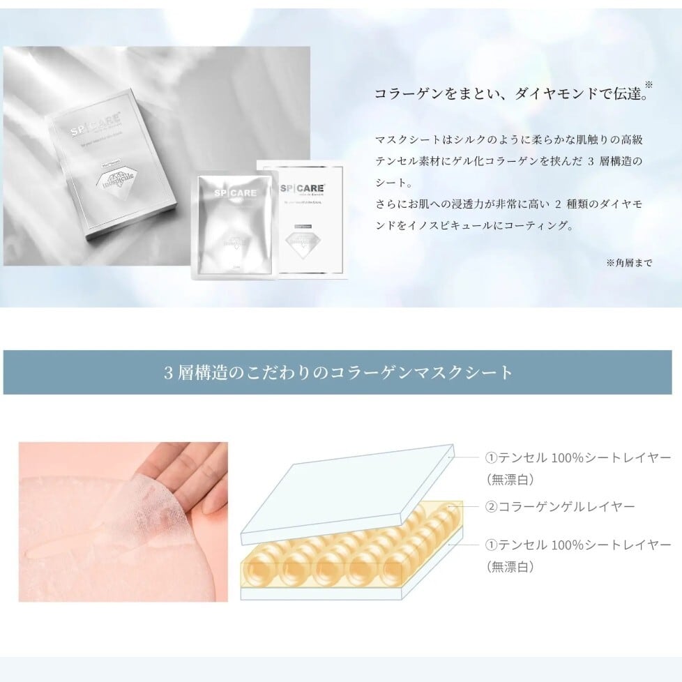 マスクシートはシルクのように柔らかな肌触りの高級テンセル素材にゲル化コラーゲンを挟んだ3層構造。