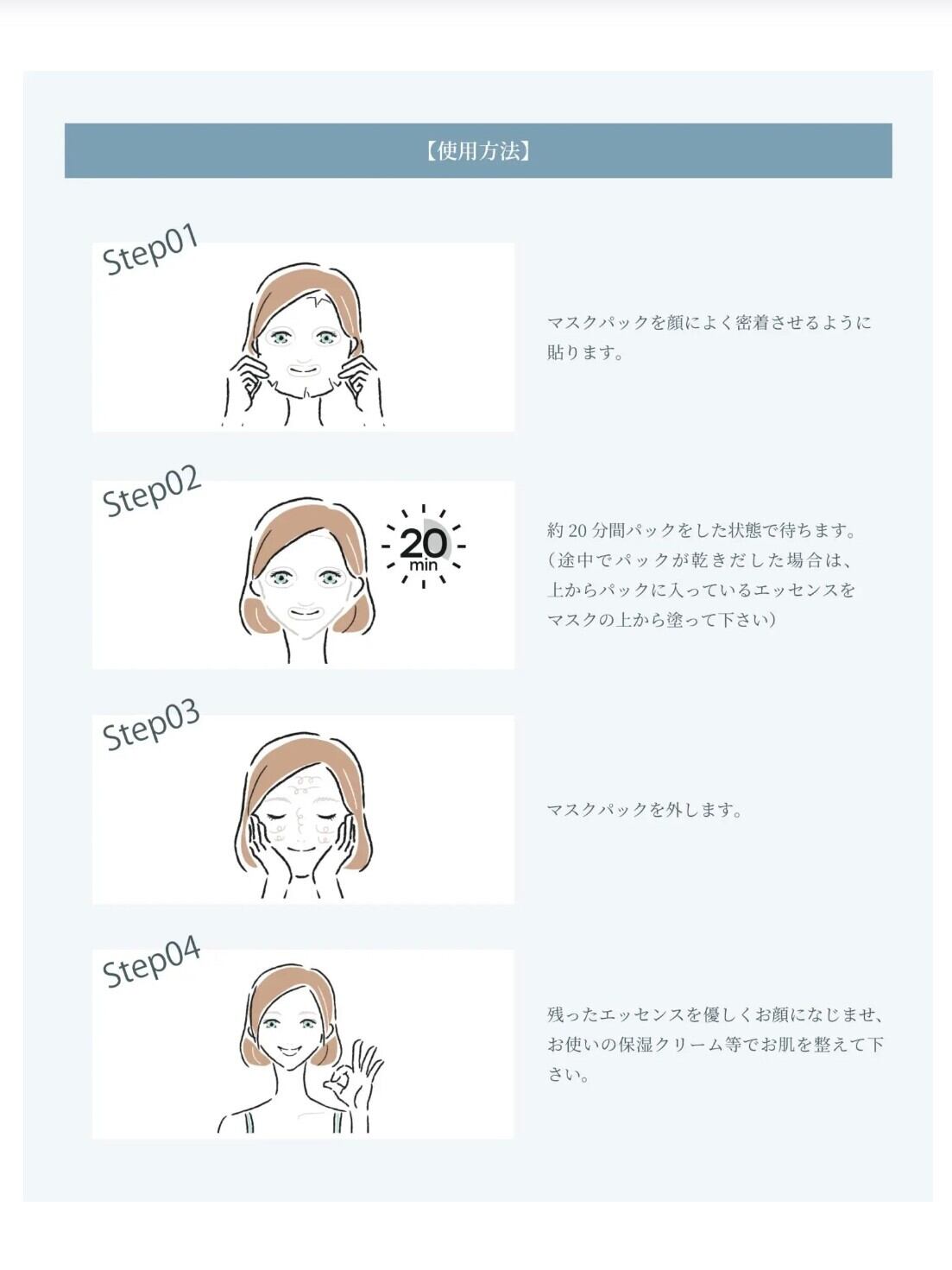 乾いてきた場合は、袋内のエッセンスをマスクの上から補ってください。
