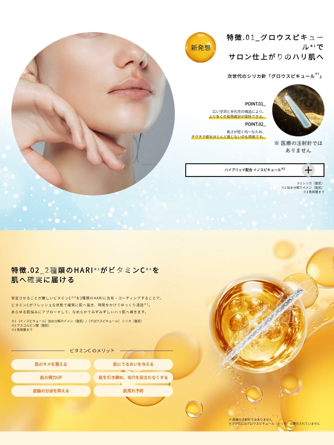 2種類のHARIが役割に応じて、ビタミンC※1をしっかり肌へ届け※4、