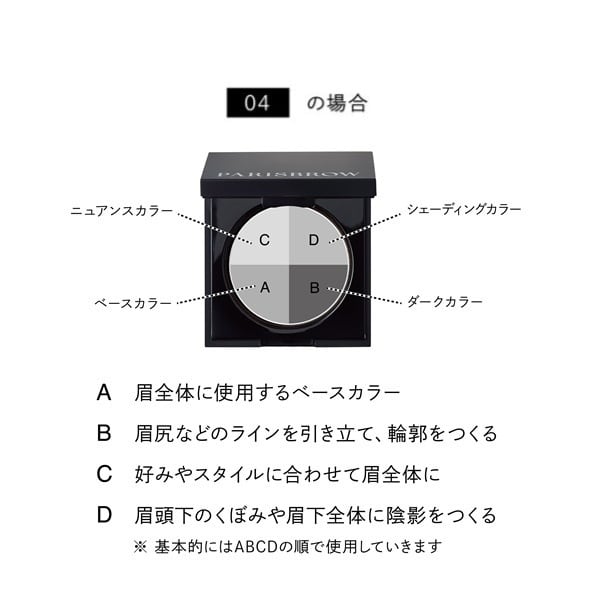 B 眉尻などのラインを引き立て、輪郭をつくる