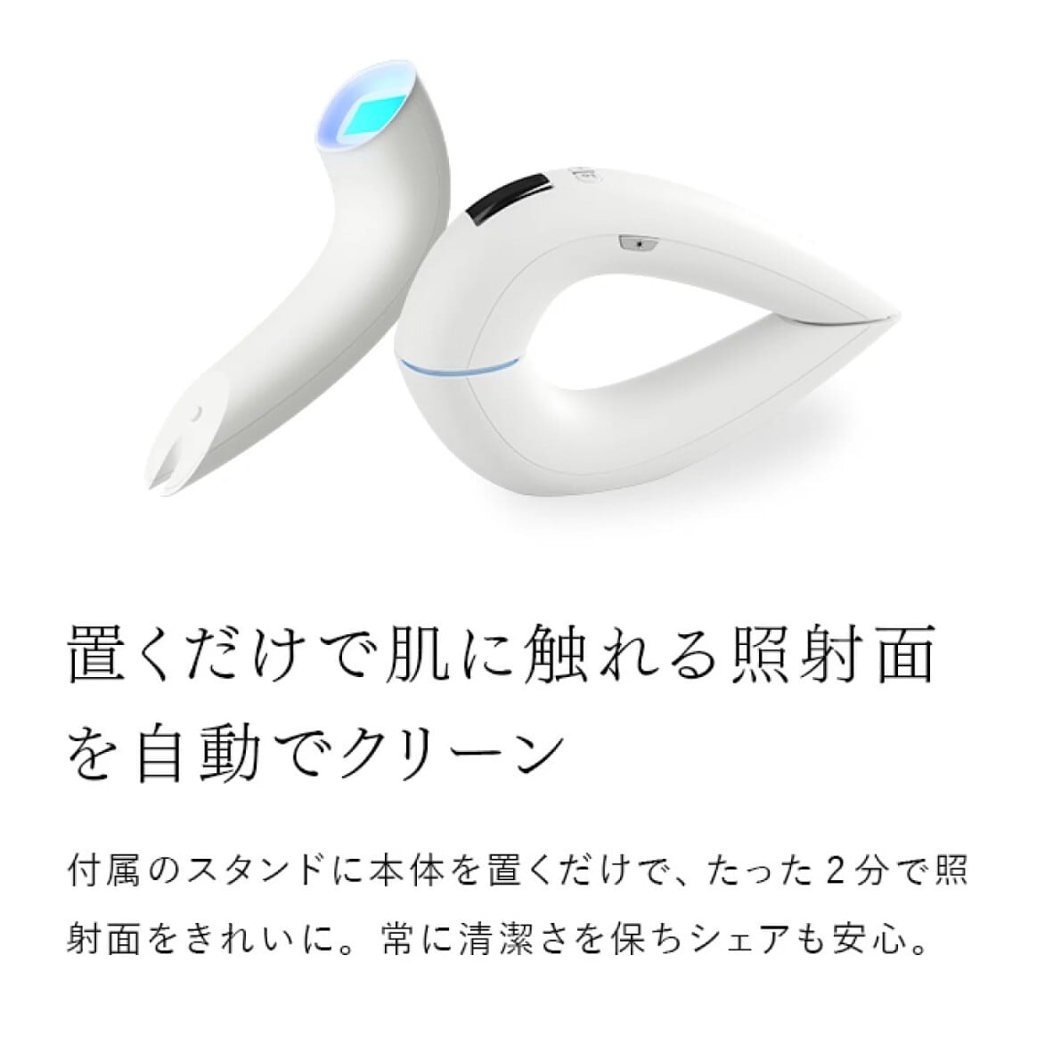 本体を付属スタンドに置いておくだけで、わずかのうちに自動で照射面をクリーンにできる、「オートクリーンシステム」。